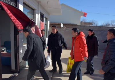 2016年1月24日上午,德赢vwin体育官网党委书记李学刚、院长郑旗、工会主席赵道卿、院办副主任邓碾管一行四人,在我校扶贫工作队队长郭李鹏带领下,冒着刺骨的寒风,带着全院教师对扶贫帮困户浓浓的情谊和关怀,来到了吉县车城乡桃村贫困户程彦忠家,送去了米、面、食油和慰问金。