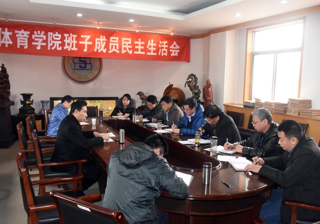 院党委书记李学刚代表学院班子感谢学校领导对体院工作的支持,要通过这次民主生活会,凝聚班子共识,共谋学院发展,改不足补短板,推动学院工作上台阶。(院办公室/文 邓碾管/摄)