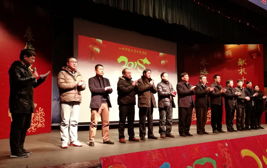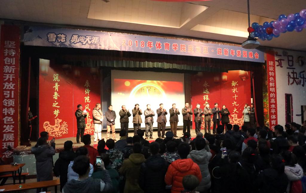 12月31日晚,在2018新年钟声敲响之际,德赢vwin体育官网领导和各系部室主要负责人来到大礼堂游园晚会现场,举行迎新年团拜会,并给同学们送2018新年的祝福。参加团拜会有德赢vwin体育官网党委书记李学刚、校党委委员、德赢vwin体育官网院长郑旗、院党委副书记孙学虎、副院长卢向阳以及各系部室主要负责人。团拜会由院团委副书记程祖浩主持。