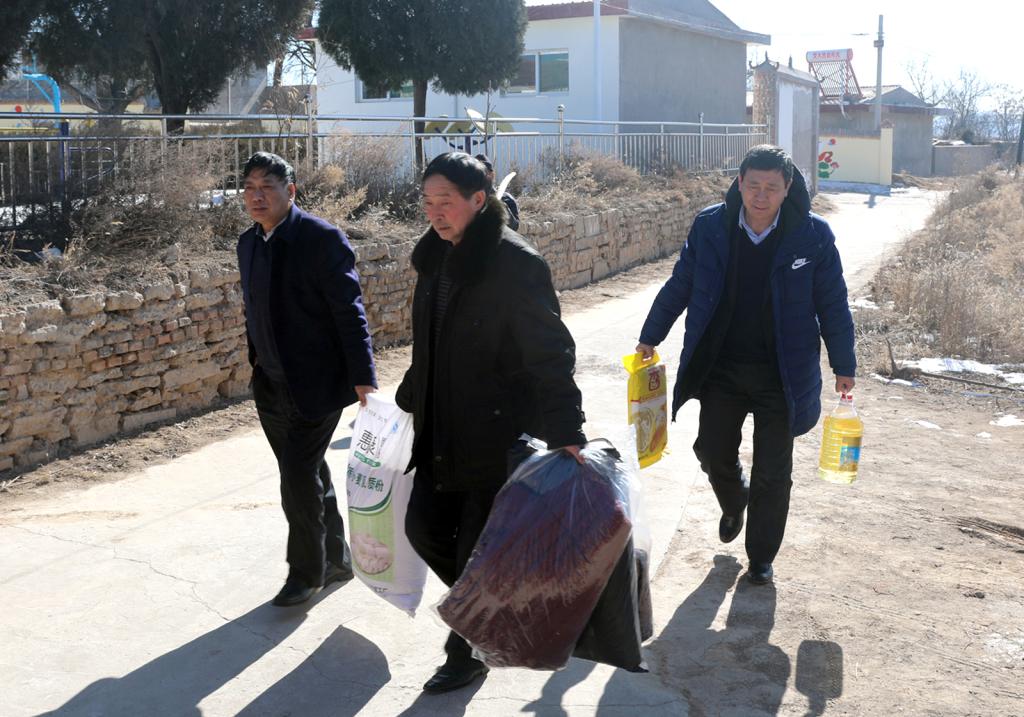 2018年2月4日上午,德赢vwin体育官网党委书记李学刚、院长郑旗、院工会主席赵道卿、院办公室副主任邓碾管一行四人,来到吉县车城乡桃村程家彦忠家中,这是德赢对结对帮扶户节程家彦忠家第三年慰问,带着德赢vwin体育官网全体教职工的牵挂与爱心,给他们家送去了米、面、油和过年服装,并送上了500元慰问金。程彦忠一家试穿了过年新衣服,80多岁的老母亲感激的说,我一辈子没穿过这么好的衣服,感谢共产党,感谢你们临汾师大(把山西师大误称)。在其家中,院领导与一家人促膝交谈,详细询问了他们一年来的生产、生活情况和冬季取暖情况,了解他们的身体状况,鼓励他们好好生活,要相信党、相信组织,今后的生活会一年更比一年好。( 邓碾管供稿)