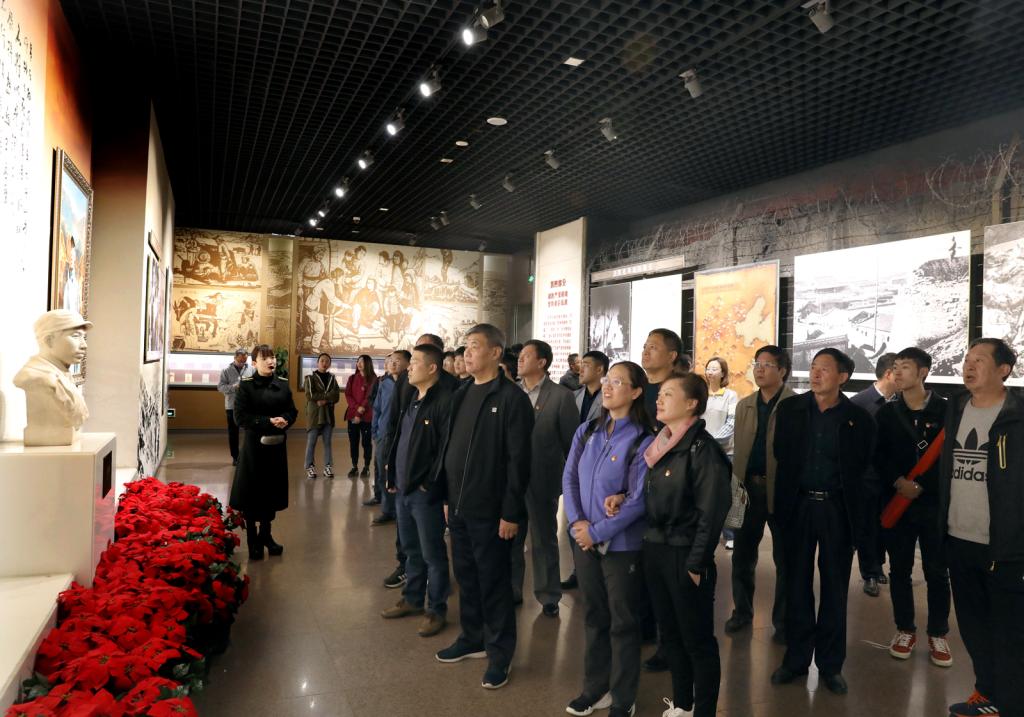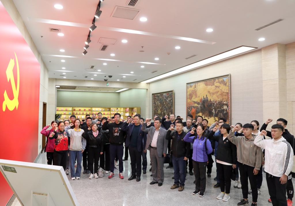 参观结束后,全体党员在八路军纪念馆前,面对鲜红的党旗,举起右拳,庄严宣誓,重温入党誓词。