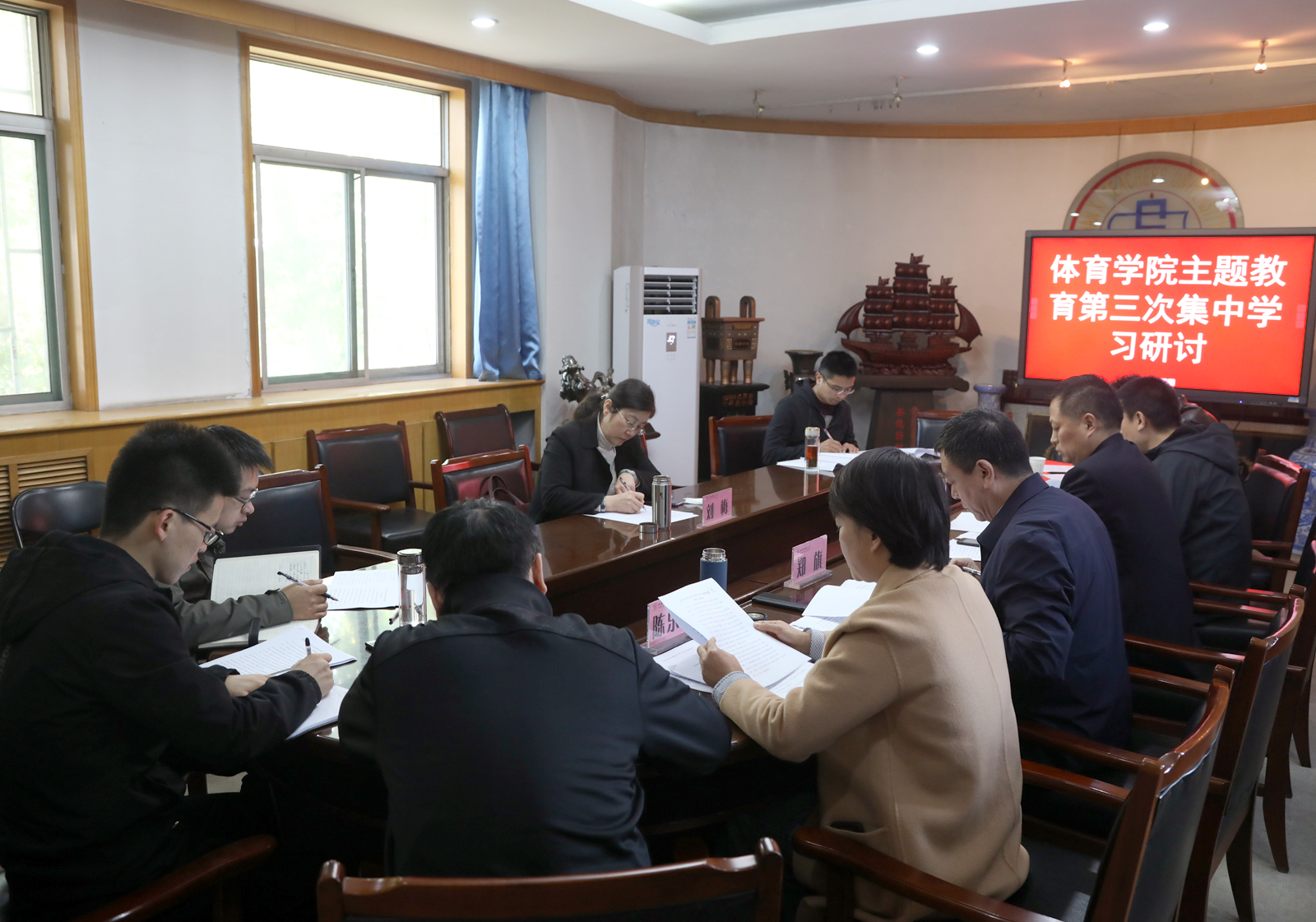 学习研讨会上,院党委书记许国宝汇报了近期学院开展“不忘初心、牢记使命”主题教育情况,强调了本次主题学习研讨的有关事项。学习研讨分为两个阶段。第一阶段为专题学习内容,院党委书记许国宝、副院长卢向阳、副院长陈乐琴、副院长王江分别带领大家学习了《中国共产党第十九届中央委员会第四次全体会议》、《习近平总书记考察调研河南时的重要讲话》、《习近平总书记在中央党校中青年干部培训班开班式上的讲话》、《习近平总书记视察北京香山革命纪念地时的重要讲话》等内容,许书记要求大家要在学懂弄通上下功夫,创新学习方式,注重学习效果与应用。第二阶段为研讨部分,与会人员分别就《德赢vwin体育官网学生早操晚自习管理办法(试行)》、《德赢vwin体育官网学生文明行为规范(试行)》以及德赢vwin体育官网竞训工作存有的不足等内容进行了深入研讨,就行文规范、文字表达等事项进行了交流,并最终达成一致,形成终稿。