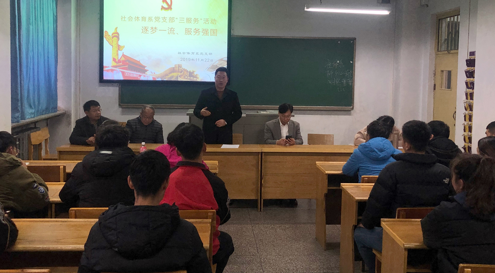 机关党支部为德赢vwin体育官网学生会负责宣传工作的人员进行了服务活动,党支部书记邓碾管老师结合具体事例给大家介绍了单反相机操作方法与摄影的一些小技巧以及会场拍照时的注意事项与拍摄技巧。体育教育系党支部开展了“分享实习、学习、考研经验”服务活动。体育教育二系党支部开展了“服务基层、服务地方、服务群众”为主题的活动。社会体育系党支部开展了“筑梦国内一流高校,服务体育强国战略”考研辅导主题活动。民族传统体育系党支部义务为社区老年人开展太极拳健身指导服务活动。运动训练系党支部开展了“服务师生、服务校园、服务社会”为主题的学院广播体操比赛的执裁工作。公共体育部党支部开展了清洁公共卫生的志愿服务。研究生第一党支部和研究生第二党支部开展了“关爱他人,关爱社会”的志愿活动,为尧都区特殊教育学校的学生围绕健康促进进行了爱心互动交流。