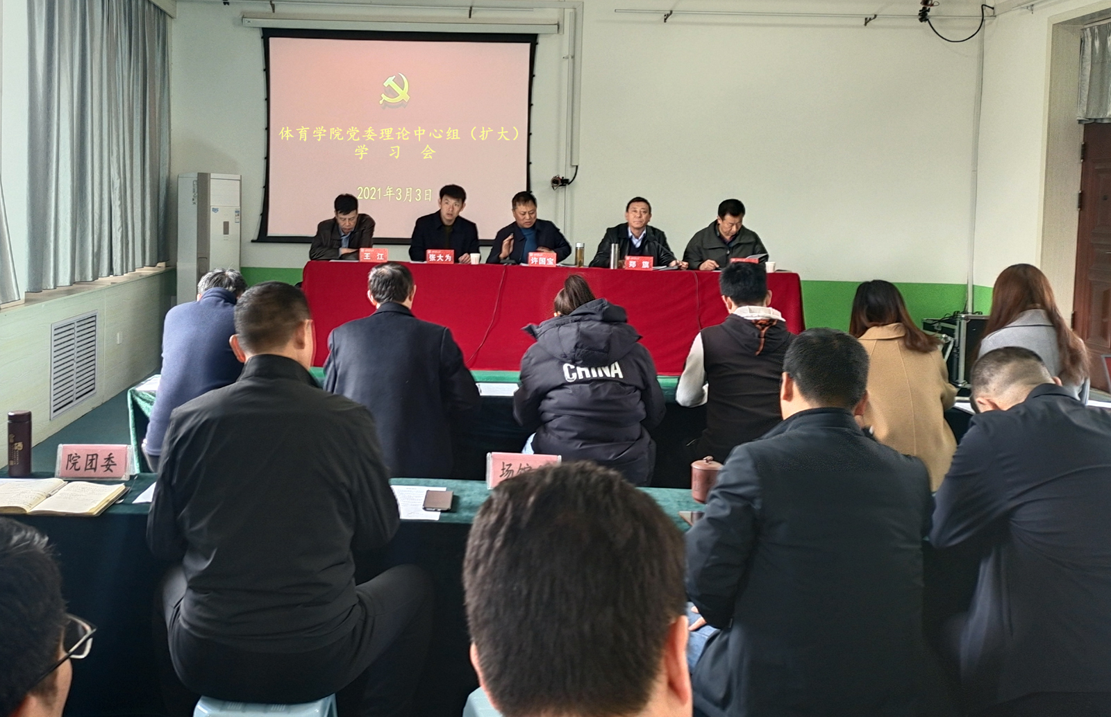 3月3日上午,院党委理论学习中心组(扩大)学习会议在运动生物力学实验室召开,院领导、党支部书记、院工会、团委以及各系部科室负责人、全体辅导员参加了学习。会议由院党委书记许国宝主持。