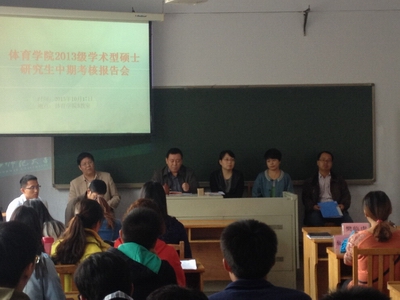 参加中期考核的研究生分别从思想政治表现、学分、学位英语、英语考级、科研成果、学术活动参与、教学实践、学位论文研究进度、获奖等方面进行汇报。考核组导师在考核中对学生各项考核指标进行仔细询问和核实,并对每位参加考核的学生进行考核结果评定。汇报结束后召开了中期考核总结会,副院长冯晓丽教授主持,体育学一级学科带头人院长郑旗教授对考核结果做了总评,并提出了下一阶段学位论文进度和质量的具体要求。