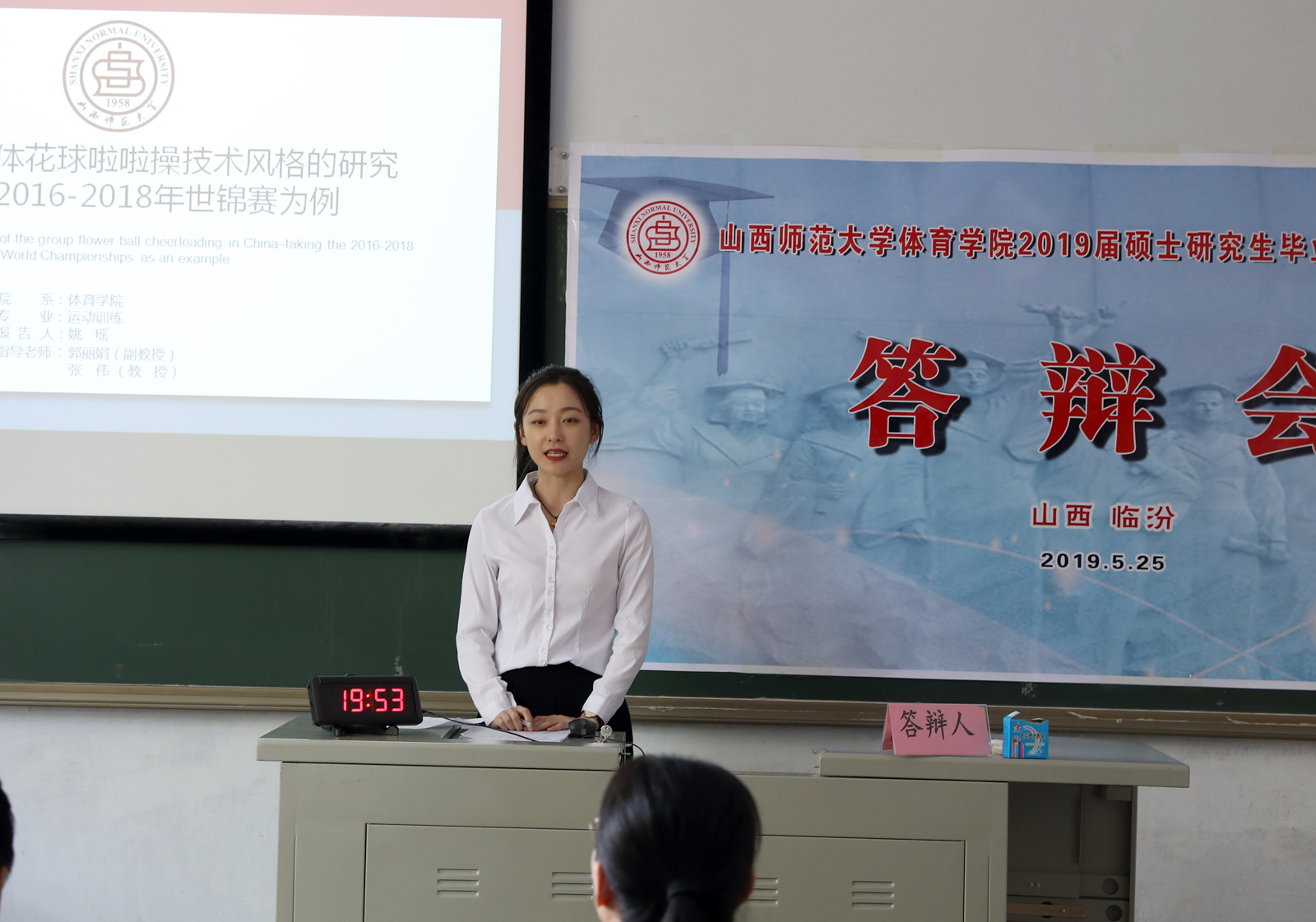 5月25日,德赢vwin体育官网举行了2019届硕士研究生毕业(学位)论文答辩会。答辩会分为五组,共有学术型、专业型81名研究生参加答辩。此次答辩会延续德赢对答辩工作高标准、严要求的作风,特邀华南师范大学体育科学学院硕士生导师宋亨国教授、上海德赢vwin体育官网博士生导师刘兵教授担任体育学组答辩主席,山西大学德赢vwin体育官网博士生导师李金龙教授、北京师范大学体育与运动学院博士生导师甄志平教授和太原理工大学硕士生导师史冬博教授担任体育硕士组答辩主席,还邀请了山西省中小学首批正高级教师李英民、中学高级教师潘荣庆、刘桂云、刘彦平四位专家担任体育硕士组答辩委员,此外还有多位德赢研究生导师参与了本届硕士学位论文答辩工作。全体硕士研究生旁听了答辩。