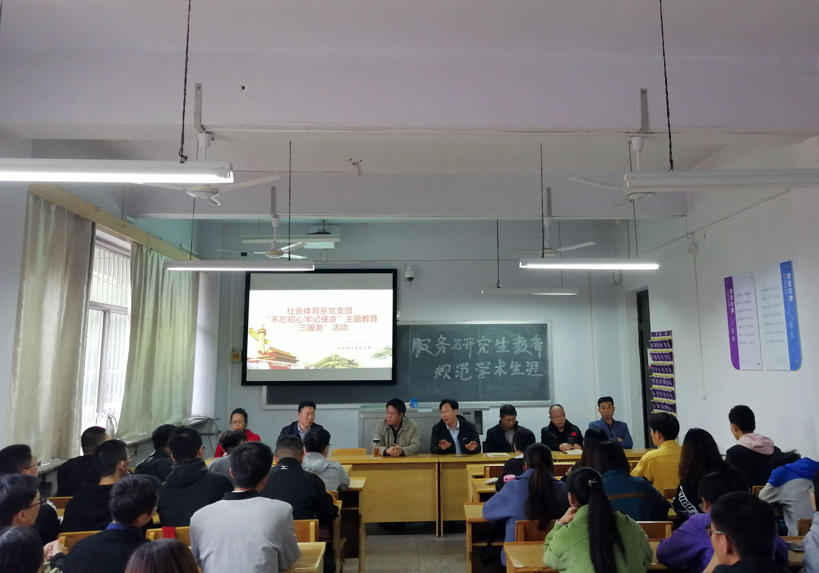 为加强德赢vwin体育官网“不忘初心、牢记使命”主题教育深入开展,社会体育系党支部于10月25日星期五在德赢vwin体育官网教学楼六教室开展“不忘初心、牢记使命”主题教育“三服务”活动。“三服务活动”,目的是服务地方、服务基层、服务群众,为身边的群众做实事好事。本次活动围绕“服务研究生教育,规范学术生涯”,和2019级体育学学术研究生们讨论交流学习心得,答疑解惑,合理规划研究生生活。