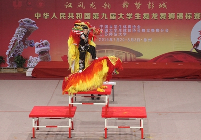 7月29日—8月3日,由中国大学生体育协会主办的中华人民共和国第九届大学生舞龙舞狮锦标赛在江苏师范大学举行,来自华侨大学、四川师范大学、首都德赢vwin体育官网等39所高校的近700名学生参赛。我校舞龙舞狮代表队在领队民族传统体育系主任赵道卿、教练员高贯发的带领下,共派出12名运动员参加了本届比赛。