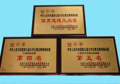 本次竞赛项目设有舞龙、舞狮、传统项目、荷花龙、教学舞龙,分为甲组(普通高校)、乙组(体育院校)、丙组(职业技术学院)三个组别。我校代表队参加了乙组传统北狮与自选北狮的比赛,全体学生经过团结协作、努力拼搏,最终荣获传统北狮第四名、自选北狮第五名的优异成绩。舞龙舞狮代表队获体育道德风尚奖,郝嗣伟获优秀运动员称号,孙晓雷获最佳引狮员称号,高贯发老师被评为十佳教练员。