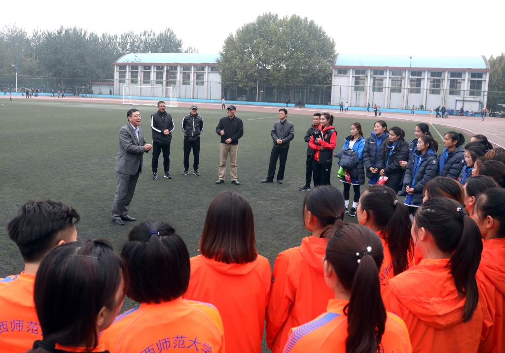 巾帼不让须眉,绿茵展英姿。10月14日——16日,江南大学副校长吴正国、体育部书记戴建明、体育部主任朱新伟等有关负责人一行带领江南大学女子足球队到我校来访交流,分别在德赢vwin体育官网和一校区足球场与我校女子足球队进行了友谊赛。江南大学副校长吴正国与我校党委常委、校运动委员会主任、副校长车文明分别为本次友谊赛开球,德赢vwin体育官网党委书记李学刚、院长郑旗陪同。