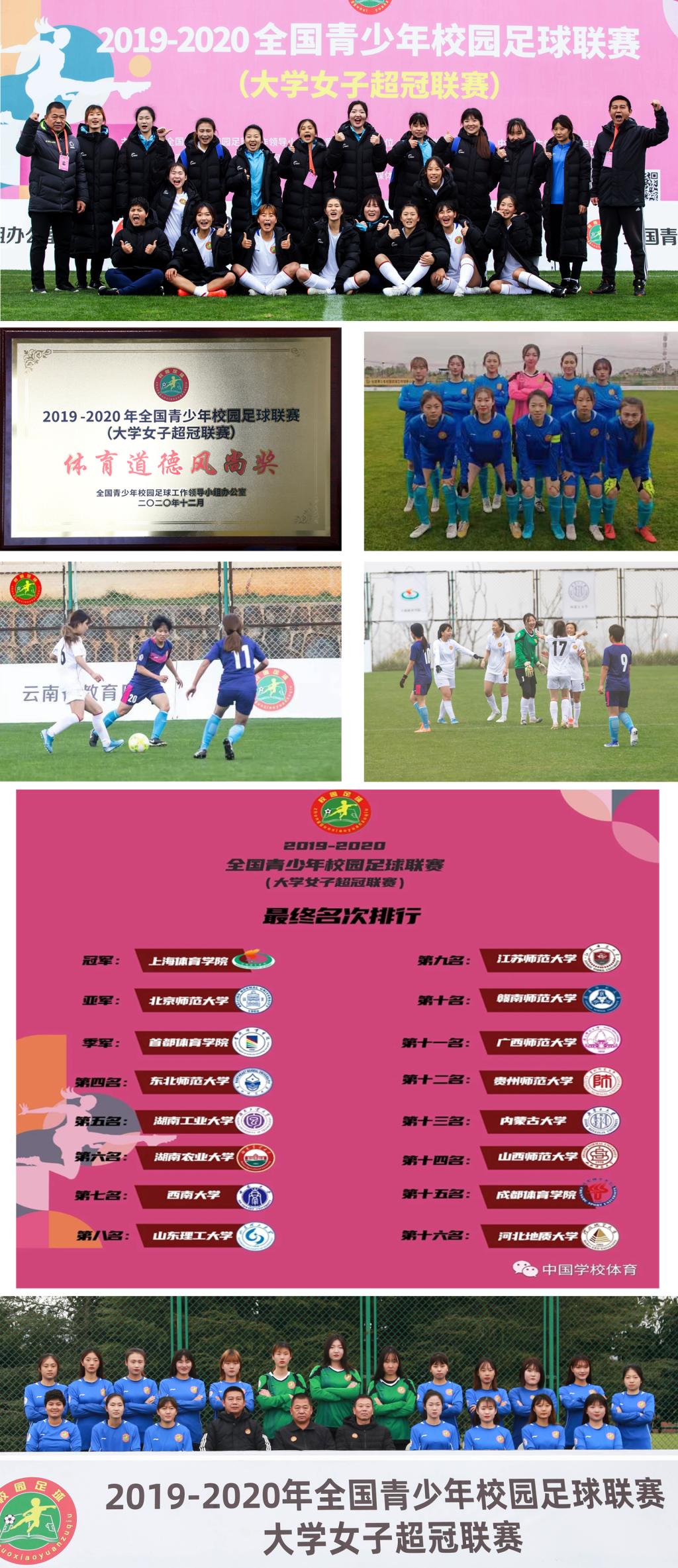 12月14日至23日,由全国青少年校园足球工作领导办公室、中国大学生体育协会主办,云南泸西足球基地承办的2019-2020年全国青少年校园足球联赛---大学女子超冠联赛落幕。我校女子足球队被递进入围参加此次联赛,由总教练李吉慧,教练沈军、沈国征带领20名运动员参赛,参加此次比赛我们抱着学习锻炼的态度,在开赛初期,虽然连连失败,但是全队仍然不气馁,教练队员一起分析总结每场比赛表现出来的问题,及时调整改进,全队团结协作、努力拼搏,克服多重困难,取得了本次比赛第十四名和体育道德风尚奖。本次比赛检验了我校足球教学与训练水平,使我们看到现在距优秀水平的差距,为我们接下来的训练部署安排明确了方向。在参赛379名运动员中,我校队员罗佳怡球员身价榜排名第九。本次比赛采取集中赛会制办法,旨在丰富校园文化,搭建高校交流与学习的平台,最后通过紧张的比赛角逐上海德赢vwin体育官网、北京师范大学、首都德赢vwin体育官网分获一、二、三名。(女子足球队供稿)