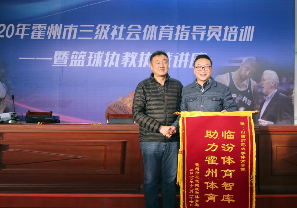 12月27日,李向前博士、李俊明副教授受临汾市体育局和临汾体育智库委托赴霍州市参加该市篮球教练员、社会体育指导员培训工作。李向前博士对霍州市篮球协会成员进行了现代篮球教练员职业素养、执教理念、教练员临场指挥等基本内容的传授;李俊明副教授从社会体育指导员服务宗旨、管理办法以及体育俱乐部经营与管理等方面,结合霍州体育工作实际进行了讲解。他们的讲授得到霍州市体育工作人员、教练员的一致好评,并向德赢和临汾体育智库赠送旌旗,期待更多的专家教师服务基层。(院办)