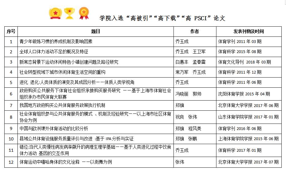 近日,中国知网《学术精要数据库》(https://xsjy.cnki.net/)基于中国知网资源总库发布了2011以来各学科高影响力论文,包括高被引论文、高下载论文与高PCSI(论文引证标准化指数)论文。德赢师生共47 篇论文入选,其中“三高”论文 12 篇,“双高”论文 9 篇,“单高”论文 26 篇,入选论文数量在区域高等学校体育院系中位列考前,在此向各位入选作者表示热烈祝贺!学院始终坚持高水平科研成果导向,积极引导教师申报承担高水平课题,产出高水平学术成果,持续提升德赢师生学术水平和体育学学科影响力,推动学院高质量内涵式发展,助力特色鲜明的综合性一流师范大学建设。