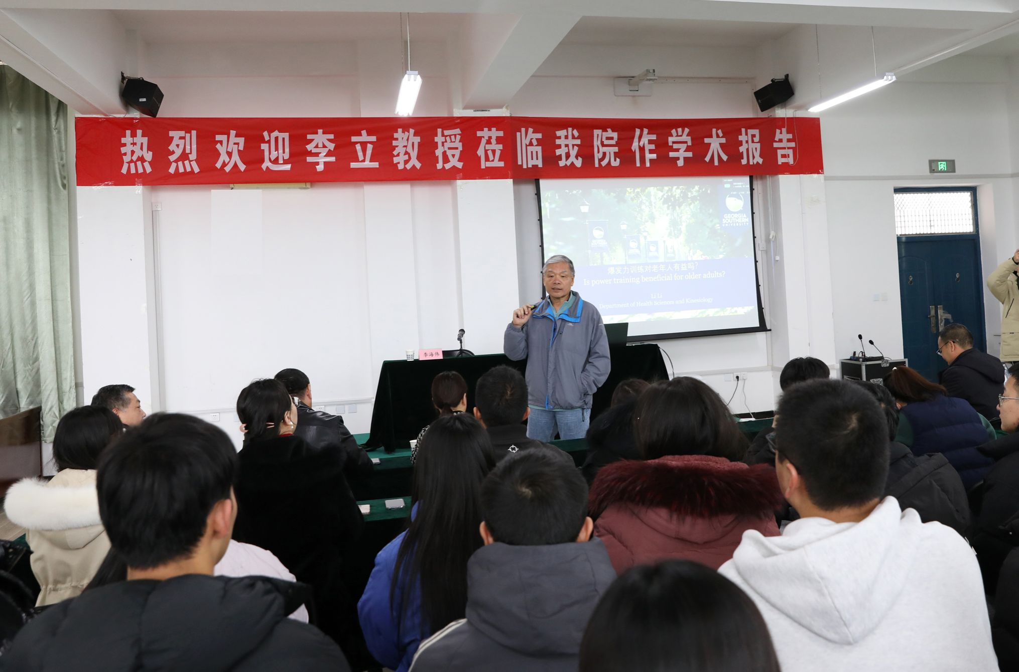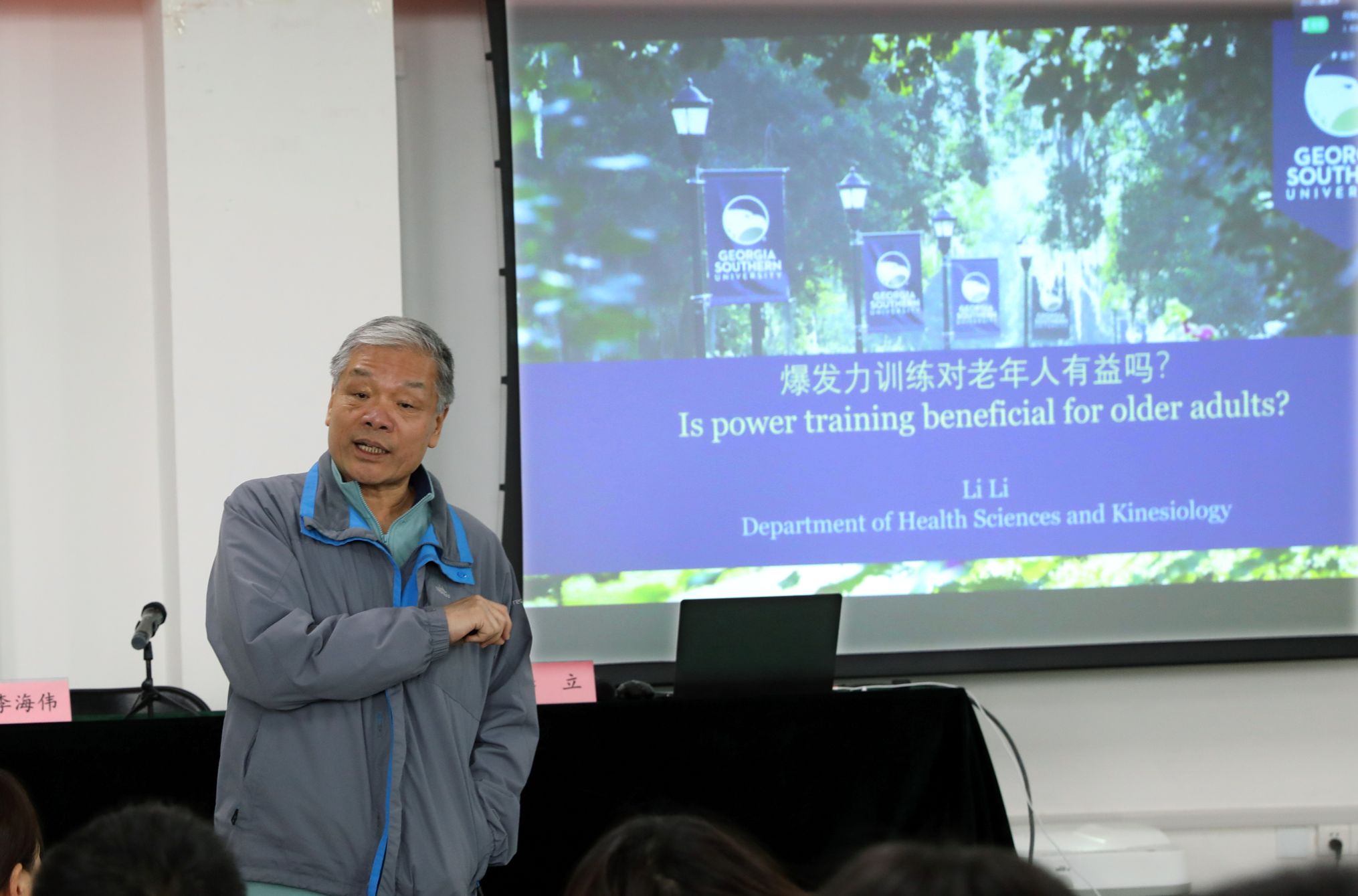 12月14日下午,德赢邀请美国运动科学学院院士、博士生导师李立教授进行了题为《爆发力训练对老年人有益吗?》的学术报告,报告由副院长李海伟教授主持,学院部分教师和研究生聆听此次报告会。