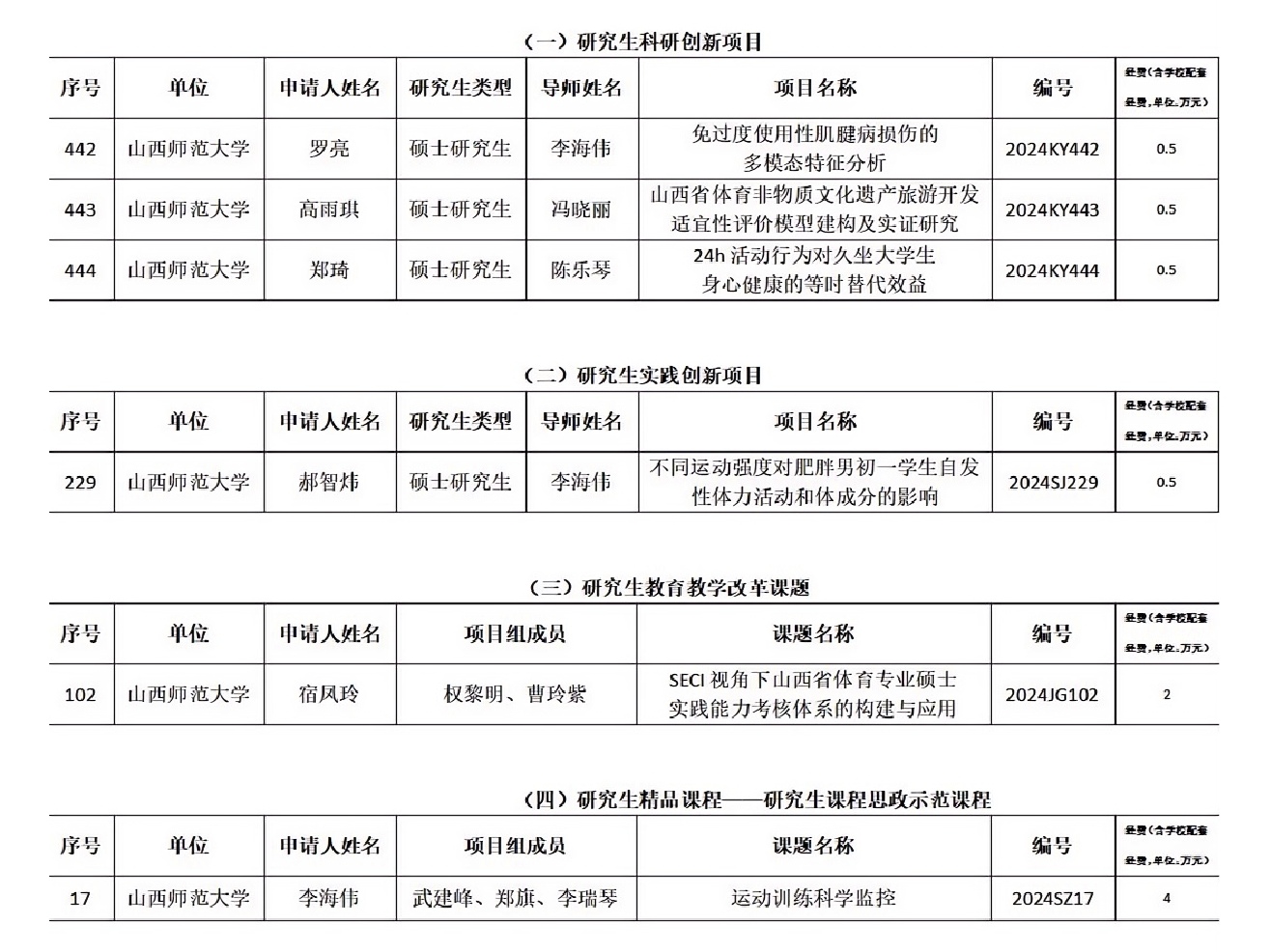 近日,山西省教育厅公布了2024年度研究生教育创新计划各类项目名单(晋教研〔2024〕1号)。德赢共获批6个项目,涵盖了精品课程、教育教学改革、科研创新和实践创新等多个领域。