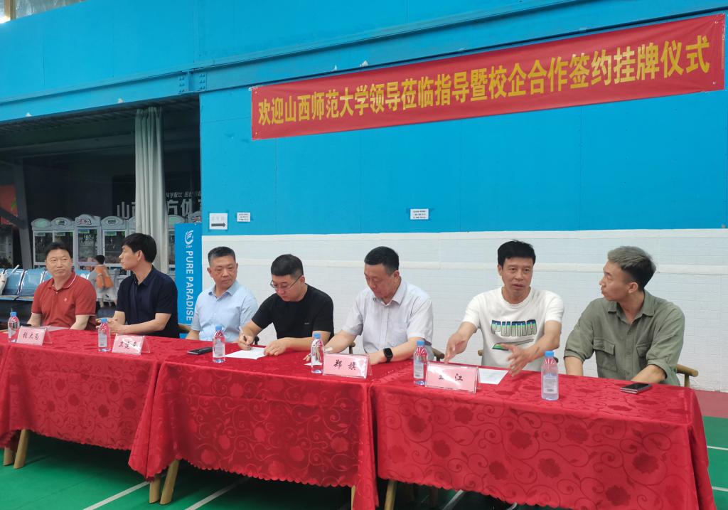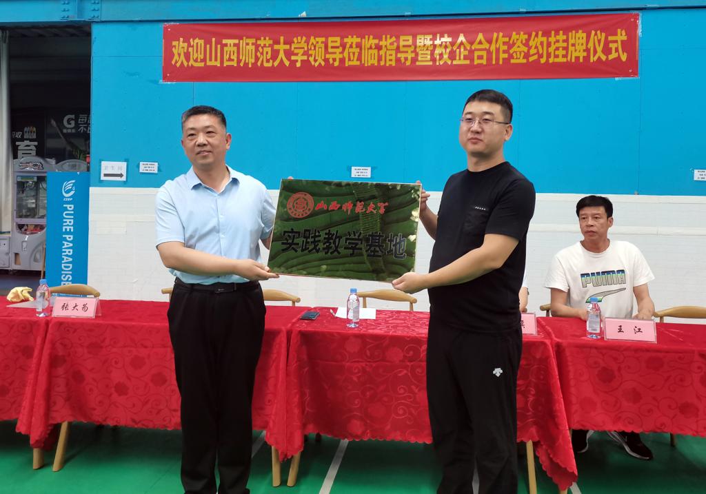 6月9日下午,德赢vwin体育官网领导卫建平、郑旗、张大为、王江、孟春雷一行赴山西立方体育发展有限公司开展访企拓岗工作,院长郑旗代表学院与立方体育发展有限公司董事长张庆奎签订了体育教学实践基地合作协议,院党委书记卫建平为实践基地授牌。